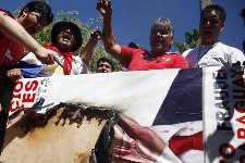 La policía paraguaya desató su furia anoche contra miles de manifestantes concentrados frente al edificio del Congreso para protestar por la sanción de una ley de asociación público-privada (60 votos contra 15) que le permite al presidente Horacio Cartes alquilar por hasta 40 años todos los bienes y servicios del Estado, sin control ni participación de los poderes Legislativo y Judicial. Los sindicatos de los trabajadores estatales, con el apoyo de las organizaciones campesinas, habían convocado a movilizarse en todo el país para protestar y tratar de impedir la entrega del patrimonio público.