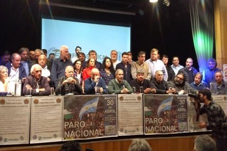 "Este frente sindical es el fruto de la coherencia de los últimos años, seguimos el espíritu de lucha contra las políticas económicas de este modelo. Ratificamos el paro del 1 de mayo y profundizaremos nuestra pelea contra el Gobierno", advirtió Pablo Moyano, del gremio de Camioneros, quien agregó que "este gobierno tiene fecha de vencimiento, y es en octubre próximo con las elecciones".