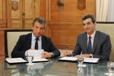 El ministro del Interior, Florencio Randazzo, firmó un acuerdo ferroviario con el gobernador de Entre Ríos, Sergio Uribarri, con el objetivo de reforzar la recuperación del tren de pasajeros y del tren de carga tras la nacionalización de ALL.