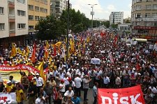 En una jornada de huelga y marchas convocadas por varias federaciones sindicales y colegios profesionales, decenas de miles de personas desembocaron en la plaza estambulí de Taksim, símbolo de las protestas, y en la de Kizilay, en el centro de Ankara.